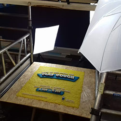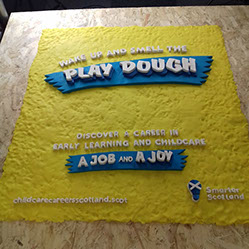 Having come up with the idea of play-doh, ubiquitous in most nurseries, we decided not just to create a newspaper wrap that looked as though it had been made from play-doh, but to actually create a huge piece of artwork from play-doh. So we did!