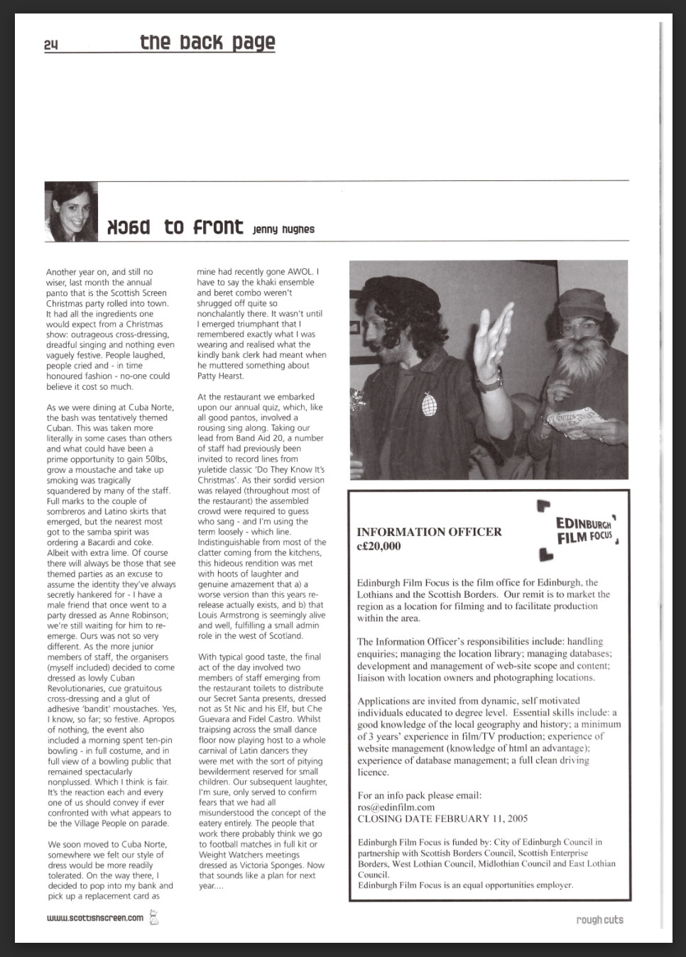 The magazine was published by Scottish Screen and had a circulation of 2,500. I wrote my column from September 2003 - September 2005.